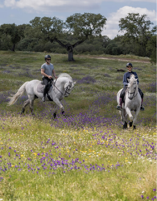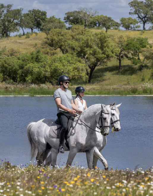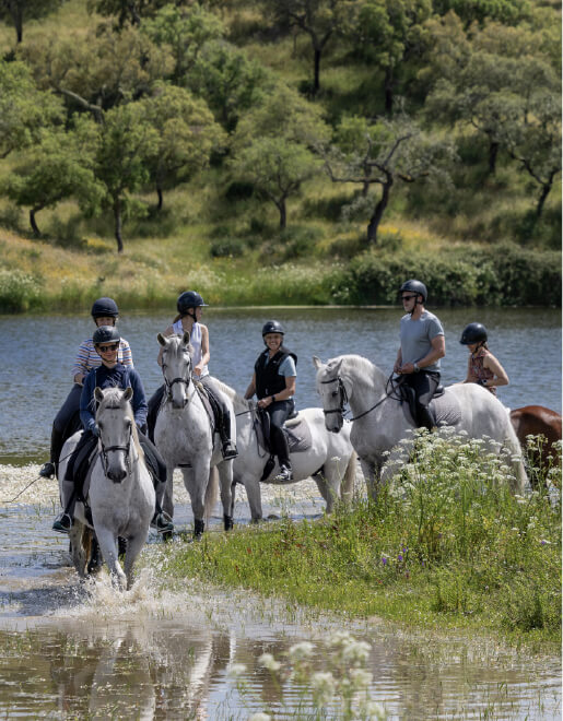 Across the estate’s 250 hectares, rides follow natural trails between fields and reservoirs, inviting a calm and immersive experience in the Alentejo landscape.